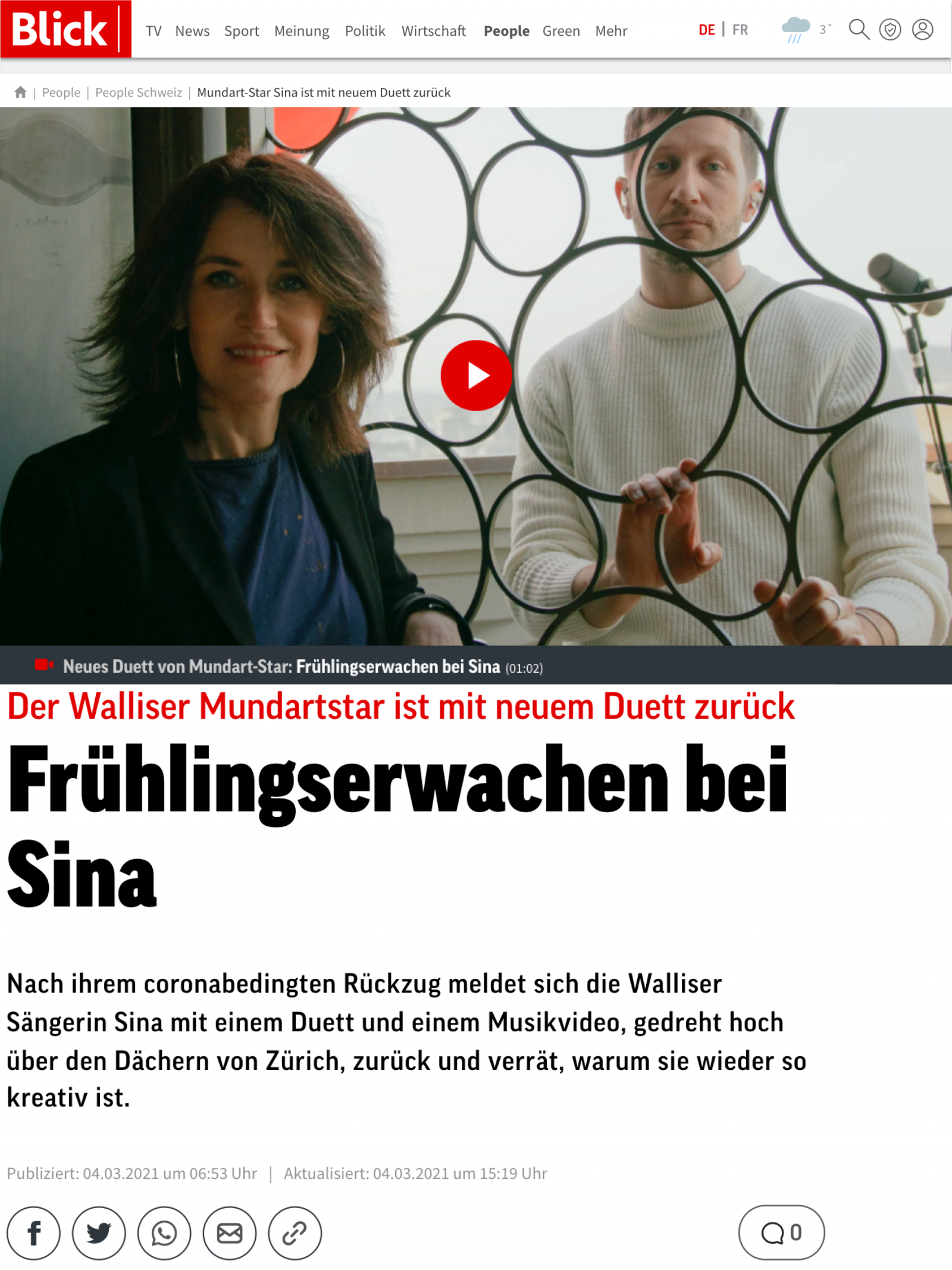 Grizzly ist verantwortlich für die komplette Produktion inklusive Drehbuch, Moderation, Artwork, Stream Auslieferung, Webdesign sowie die PR-Arbeit. Am nächsten Tag titelt Blick: «Frühlingserwachen bei Sina».