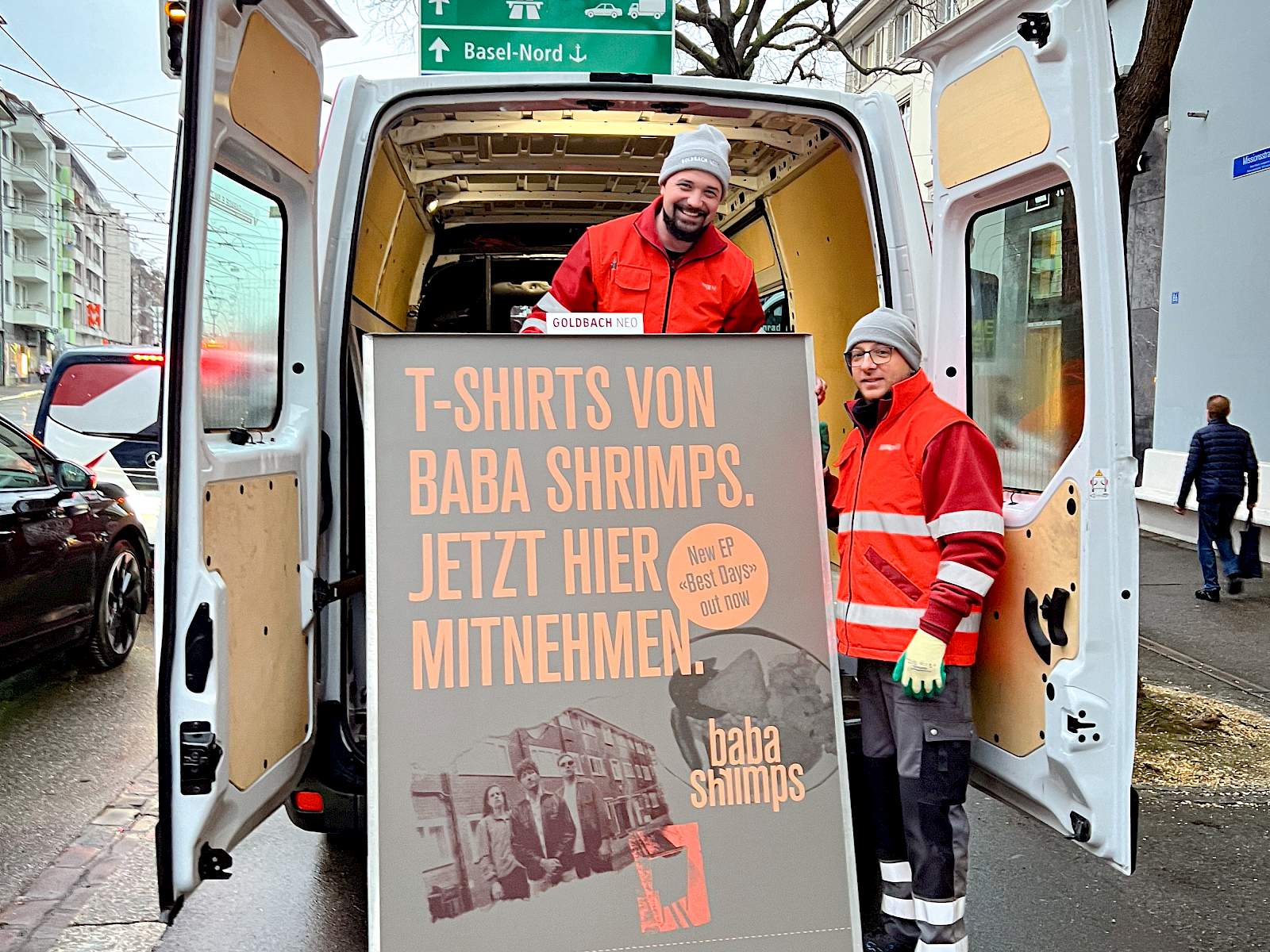 Zwei Plakatmonteure von Goldbach NEO bei ihrem Einsatz in Basel.
